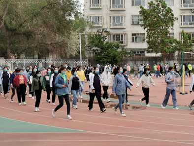 10:20所有返校的同学们来到前后操场,在老师的带领下开始了适当的体育锻炼。瞧,一个个走来那精神饱满的样子,虽戴着口罩,也遮挡不住喜悦的神情。