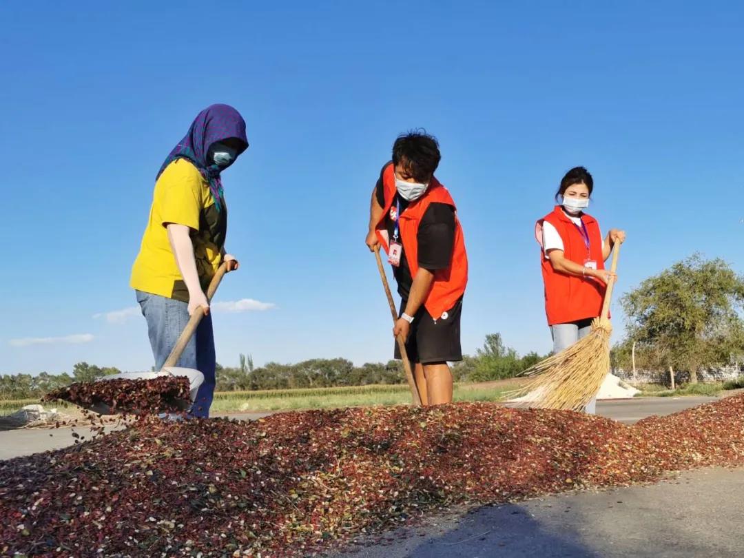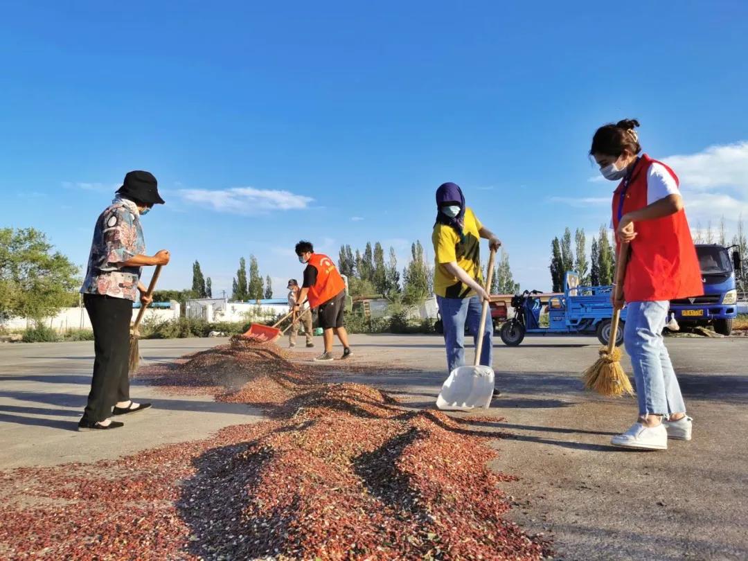 近日,奇台县古城乡果园村1200亩的红打瓜和1100亩葫芦陆续进入收获期,因市场上劳动力短缺,红打瓜的收获、晾晒工作可愁坏了种植户。188bet体育打不开驻奇台县古城乡果园村工作队、村“两委”在做好疫情防控工作的基础上,调拨两辆自走式脱粒打瓜机同时作业,组织工作队员、村干部、村党员和村内富余劳动力成立助农服务队,帮助种植户抓紧时间收获、晾晒打瓜,争取早点晒干抢占市场先机,卖出好价钱。