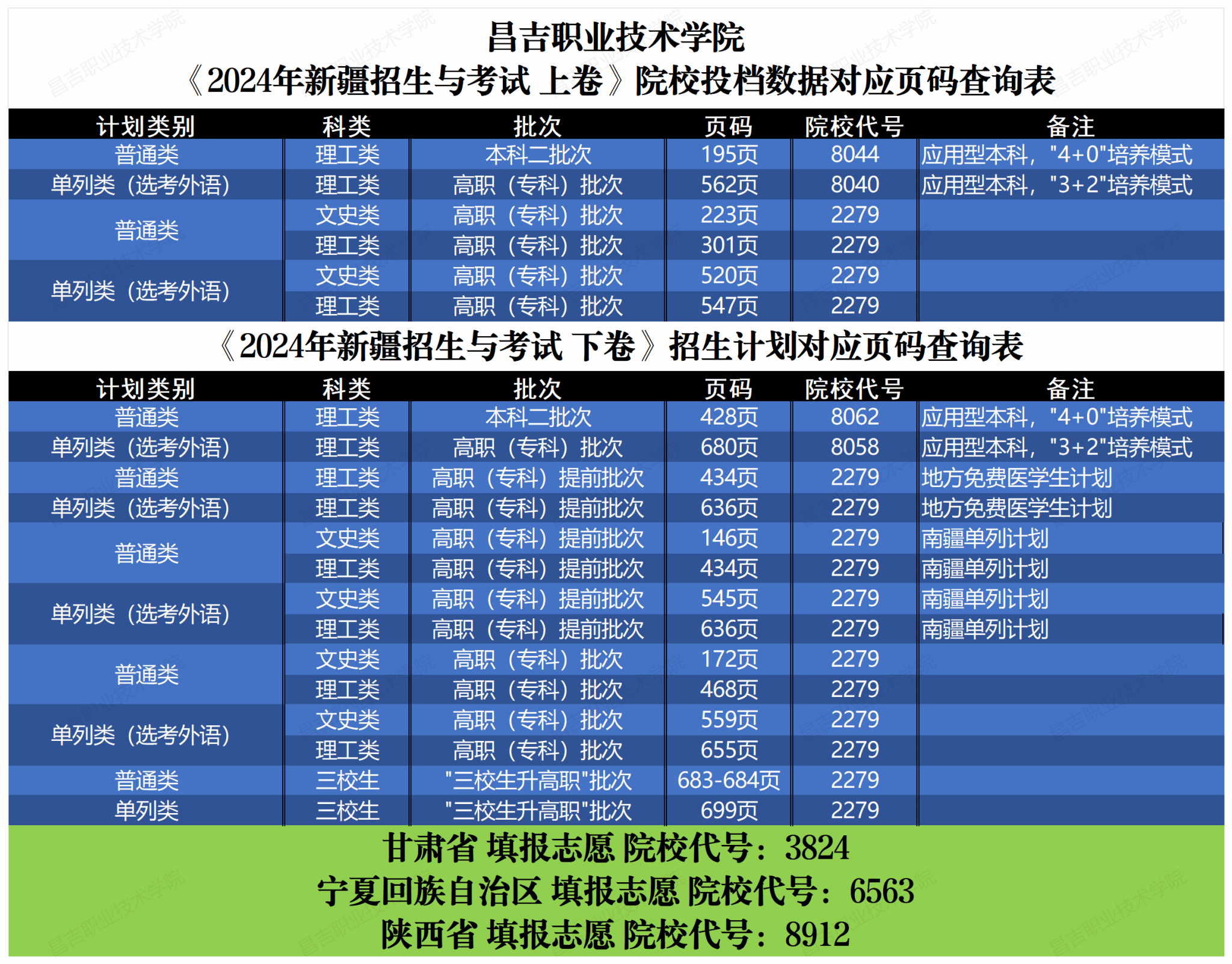 学院2024年《新疆招生与考试》招生信息对应页码查询表