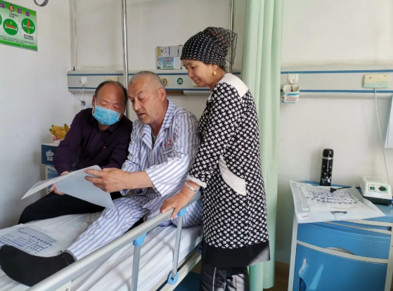 得知麦合苏提已经住院的消息,庄业强放下手头的工作,顾不上叫工作队的司机,直接拉着早晨来果园村参与“大干五十天”决战决胜脱贫攻坚工作的古城乡人大主席外力·阿卜力孜驱车赶往医院。