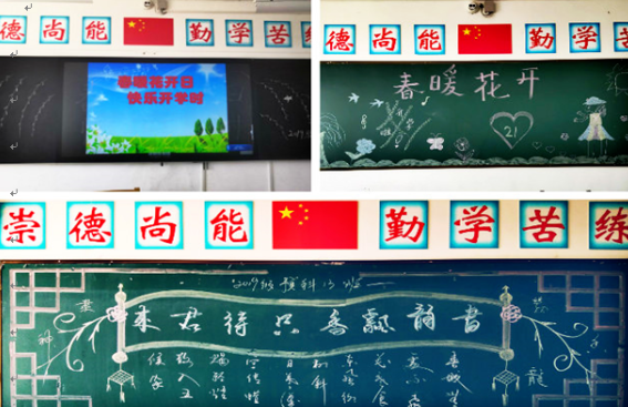 开学在即,基础教育分院在做好疫情防控、卫生清扫、病毒消杀和准备接站报到工作的同时,4月 22日上午,各班班主任在本班教室制作了一个个别样的黑板报,以此来欢迎学生顺利返校。