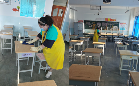 为了能让我们顺顺利利、健健康康地复学,在学校的每一间教室里,每一个角落里都能看到老师们辛勤的身影,都能看到到他们为我们所用心付出的点点滴滴。
